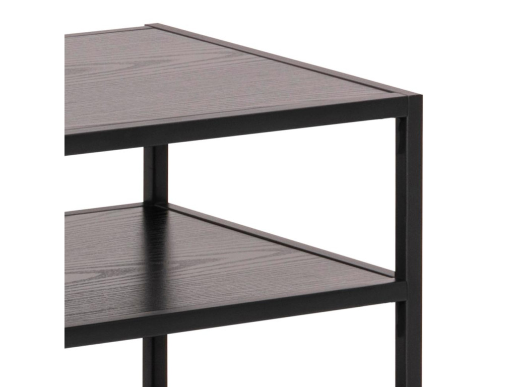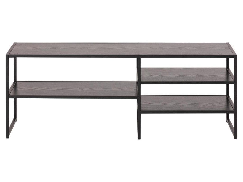 TV skrinka Seaford v čiernom prevedení prináša industriálny šmrnc a funkčný dizajn. Kovový rám a úložný priestor sú ideálne na techniku aj dekorácie. Asymetrické usporiadanie dodáva vizuálny záujem. Skvelo zapadne do moderných interiérov.