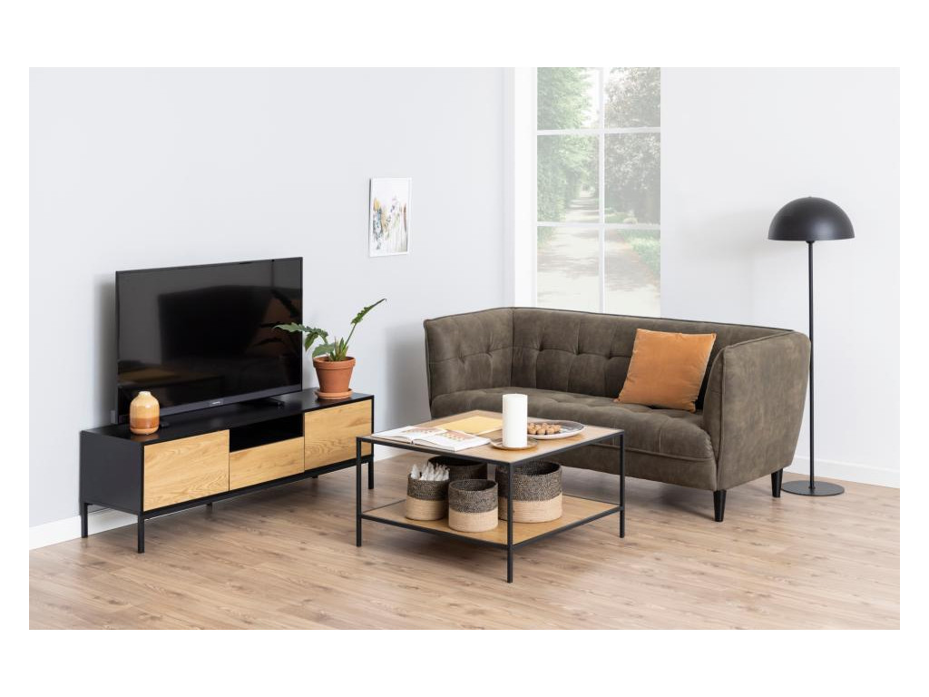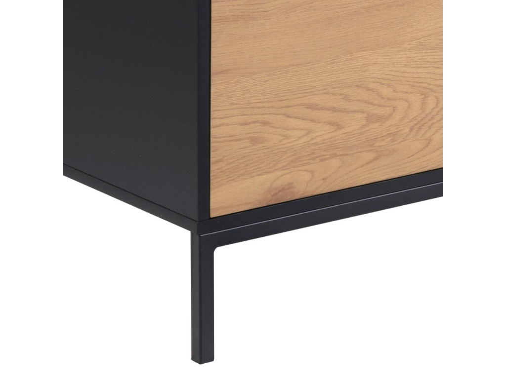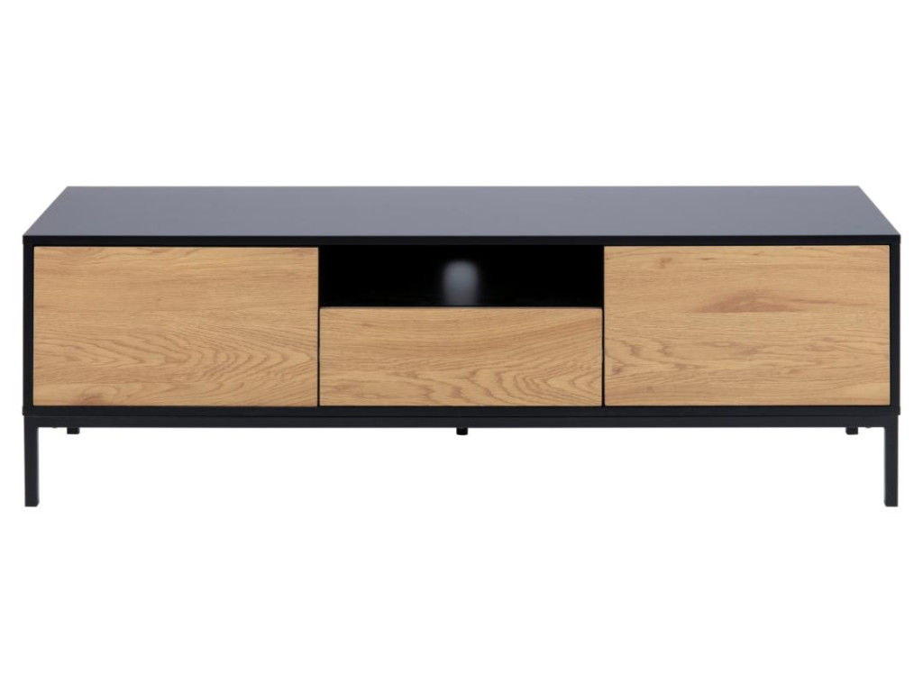 TV stolík Seaford kombinuje praktickosť a industriálny vzhľad. Vďaka otvorenej priehradke, dvom dvierkam a zásuvke ponúka bohatý úložný priestor. Spojenie divokého duba s čiernou kovovou základňou vytvára atraktívny kontrast. Skvelý doplnok do moderných obývačiek.