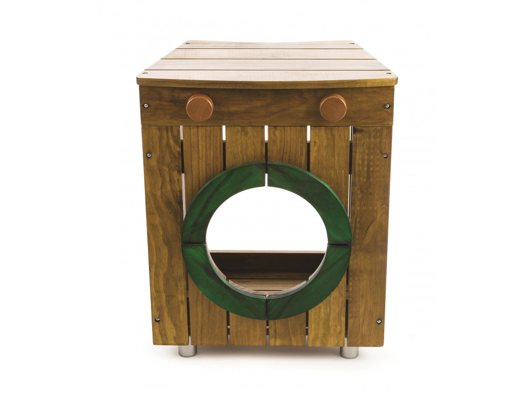 Nezáleží na počasí, všetci milujú čerstvo vyprané, voňavé oblečenie, v ktorom sai môžu hrať. Prečo si teda nekúpiť túto drevenú vonkajšiu práčku! Navrhnutá je práve na hru vonku. Táto práčka je vyrobená z borovicového dreva a je ošetrená netoxickými konzervantmi. Počas rokov si tak zachová svoj nedotknutý vzhľad. Obsahuje otočné ciferníky, ktoré vydávajú zvuk a dverové okienko. Zároveň deti učí ako sa perie bielizeň. Dverové okienko deťom umožňuje sledovať oblečenie pri praní. Nohy práčky majú zliatinový náter a ich výška sa dá prispôsobiť. Podporuje kreatívnu a predstavivú hru. Po vybalení je nutné zložiť. Vyrobené z kvalitných materiálov zo zodpovedných zdrojov. Zodpovedá európskej bezpečnostnej norme.