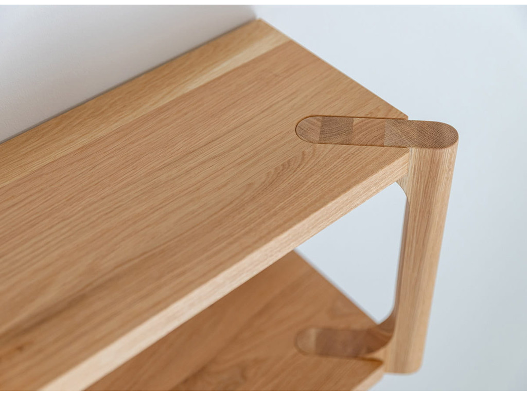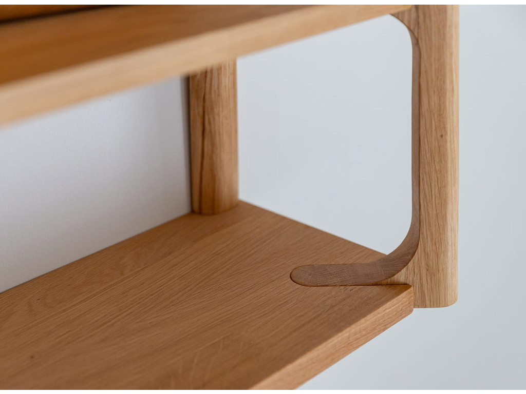 Vešiak Campi z masívneho dubu je ideálny pre udržiavanie poriadku v predsieni. Vďaka kombinácii háčikov a police ponúka praktické využitie. Jeho svetlý odtieň pôsobí prirodzene a príjemne. Skvelý doplnok pre interiér, kde sa spája funkčnosť a jednoduchý dizajn.