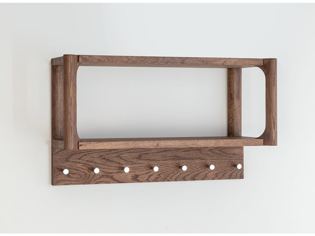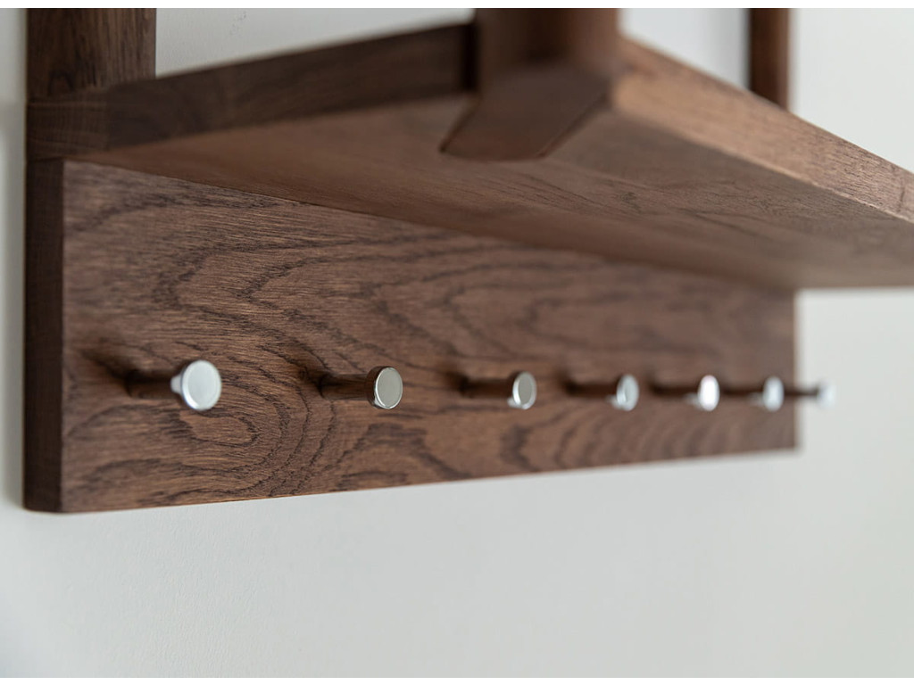 Vešiak Campi v prevedení tabakovo hnedá prináša štýlový a funkčný prvok na stenu, ktorý pomáha udržať poriadok v každodennom živote. Konštrukcia z masívneho dubu s olejovanou povrchovou úpravou zaručuje odolnosť a dlhú životnosť. Kombinácia kolíkov a praktickej police umožňuje jednoduché uloženie oblečenia aj doplnkov. Skvele sa hodí do predsiene, šatníka alebo vstupného priestoru.