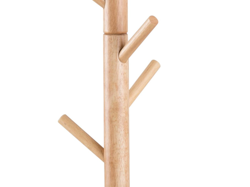 Vešiak Bremen v prírodnom prevedení je praktický doplnok do každej predsiene alebo chodby. Vyrobený z lakovaného kaučukovníka, vyniká svojím asymetrickým dizajnom a stabilným podstavcom. Vďaka výške 176 cm poskytuje dostatok miesta na kabáty, tašky aj doplnky.
