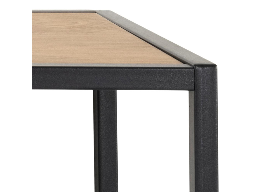 Kolekcia Seaford prináša autentický loftový charakter do každej miestnosti vďaka kombinácii matnej čiernej ocele s práškovým nástrekom a kontrastných povrchov z dubu divokého či sonoma dubu, čierneho jaseňa alebo číreho temperovaného skla. Jemne zúžené profily rámov, asymetrické rozloženie políc a vzdušné podnožia dodávajú nábytku ľahkosť, zatiaľ čo surové oceľové detaily zaručujú odolnosť a dlhú životnosť. Jednotný materiálový jazyk prechádza od minimalistických príručných stolíkov a servírovacích vozíkov až po robustné vitríny a knižnice, takže v interiéri vždy pôsobí harmonicky.