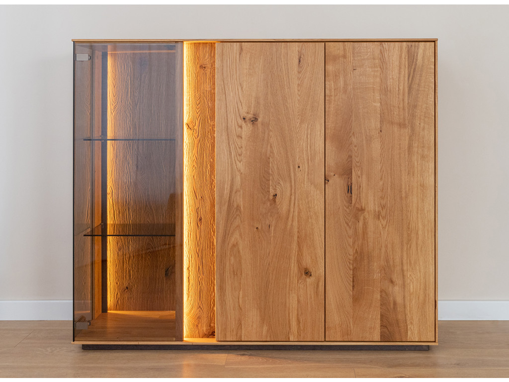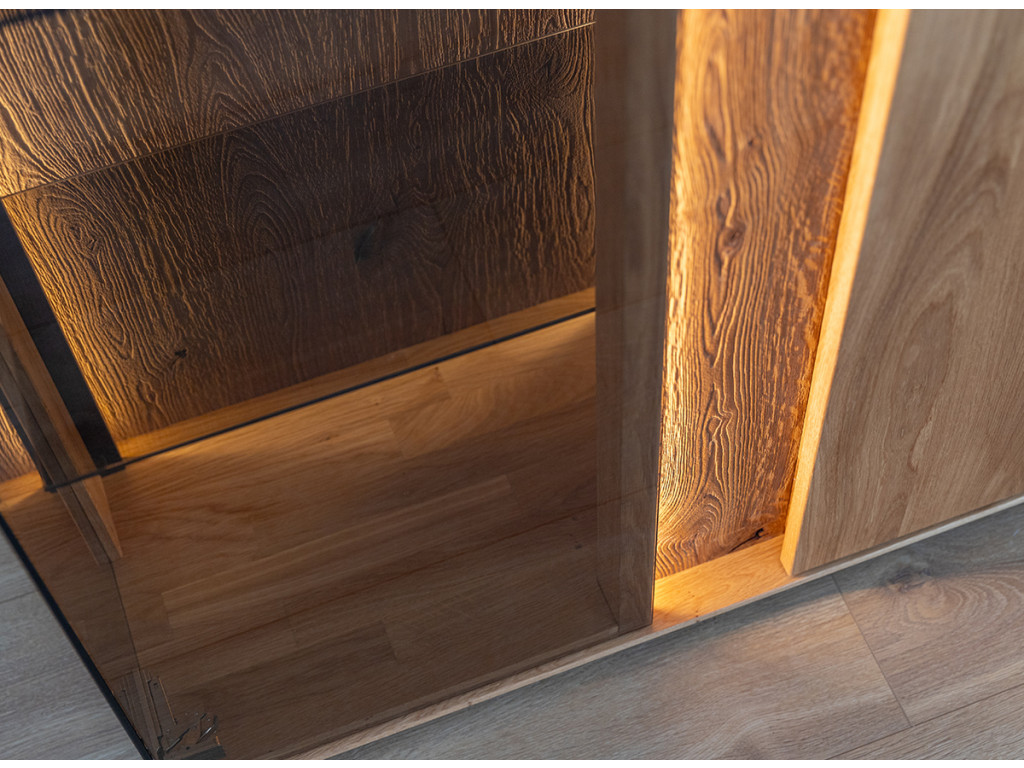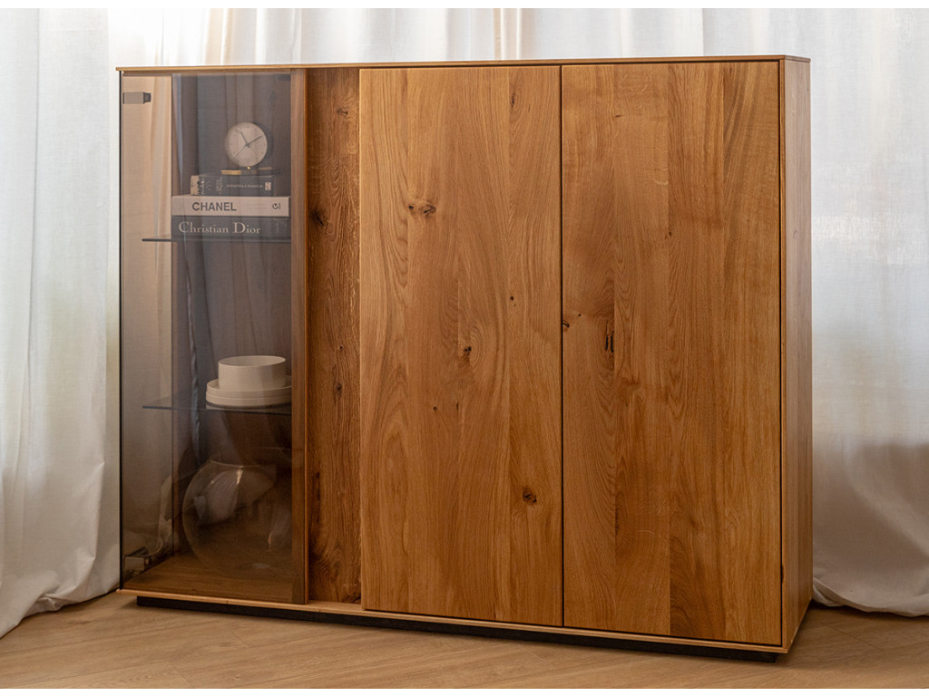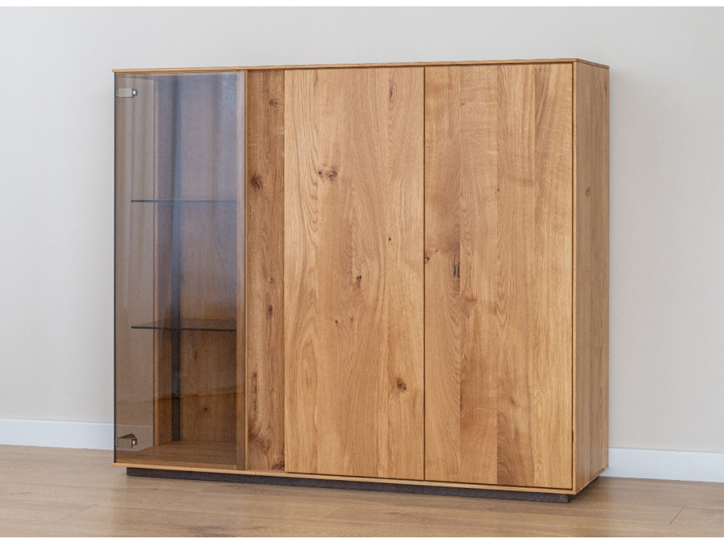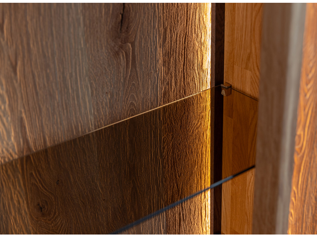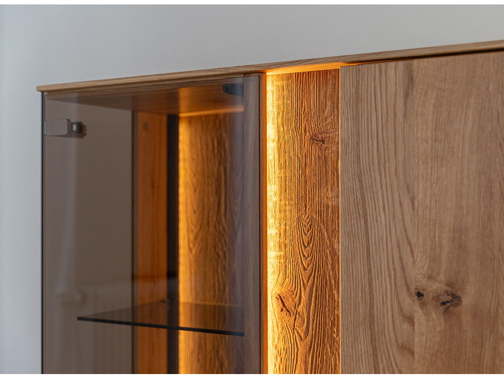 Na výrobu vitríny Collodi bolo použité masívne dubové drevo, ktoré sa vyznačuje svojím zlatistým odtieňom a vysokou odolnosťou. Povrchová úprava olejovaním zvyšuje jeho trvácnosť a zároveň zvýrazňuje jeho naturálnu krásu. Dubová vitrína je vyhotovená v modernom štýle, takže najlepšie vynikne v obývačkách či pracovniach zariadených v súčasnom dizajne.