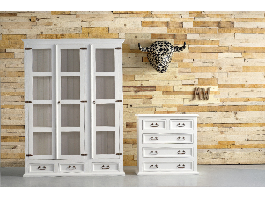 Hľadáte neprehliadnuteľný kúsok do jedálne či obývačky? Široká vitrína s presklenými dvierkami zaujme na prvý pohľad a majiteľom dopraje množstvo úložného priestoru v ktorejkoľvek miestnosti. K dispozícii totiž máte 3 police rozdelené na dve časti a 3 spodné zásuvky bez koľajníc. Pánty a rukoväte sú ručne kované zo železa a podrobené procesu zámerného zhrdzavenia. Borovicová vitrína Gerlach III tak oplýva starodávnym dizajnom zberateľského charakteru.