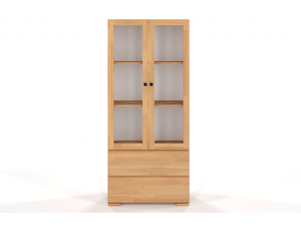 Knihy, vázy, suveníry.. .Ľudia radi odkladajú niektoré veci na miesta, z ktorých ich uvidí aj ich návšteva. Najlepším priestorom sú odjakživa vitríny. Ponúkame vám masívnu vitrínu z buka, ktorá je na pohľad elegantná a vo vnútri priestranná. Táto nenápadná vitrína vhodná do obývačky či chodby, rozjasní každú miestnosť. Drevená vitrína je doplnená o presklené dvierka, za ktorými vás čakajú 3 priestranné police na uskladnenie aj väčších hodností. Je doplnená o 2 jednoduché zásuvky, ktoré poskytujú veľký úložný priestor pre vaše veci.