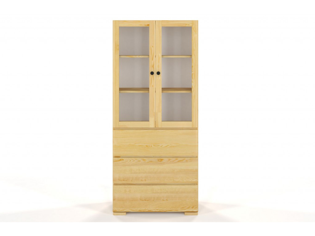 Výhodou vitrín je uskladnenie vzácnych vecí tak, aby potešili aj ďalšie oči, ktoré k nám prídu. Stačí si len vybrať takú, ktorá bude ladiť k ďalším kúskom v našej obývačke, chodbe či kuchyni. Ponúkame vám jednoduchú vitrínu vyrobenú minimalistickým štýlom - Sandemo 3S80 z masívnej borovice, ktorá sa môže pochváliť veľkým úložným priestorom v 3 policiach za presklenými dverami a 3 zásuvkami pod nimi. Dvere vitríny dopĺňajú jemné čierne úchytky.