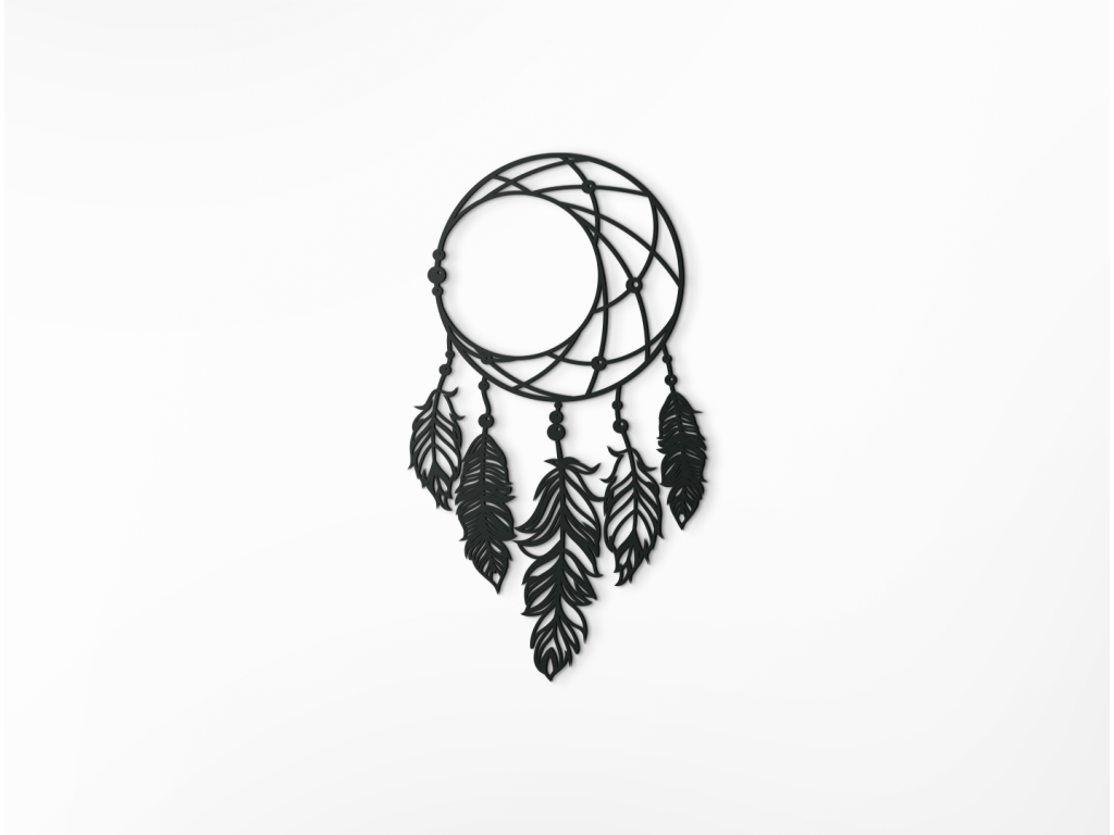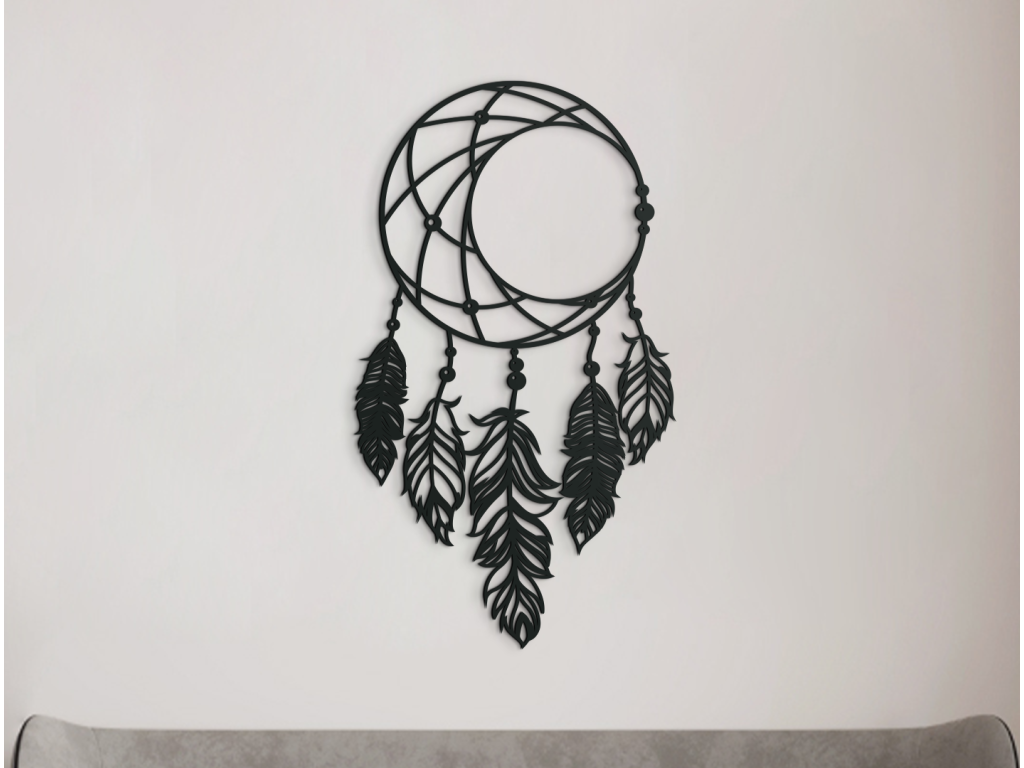 Dekoratívny lapač snov z dreva vnesie do miestnosti pohodovú a relaxačnú atmosféru. Kruh naznačuje Mesiac, na ktorom sú zavesené pierka. Dekorácia je vhodná do spálne, predsiene, chodby aj detskej izby.