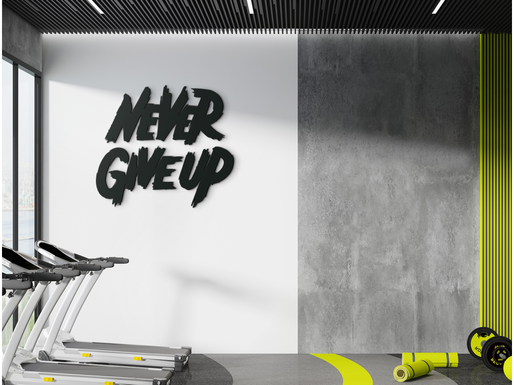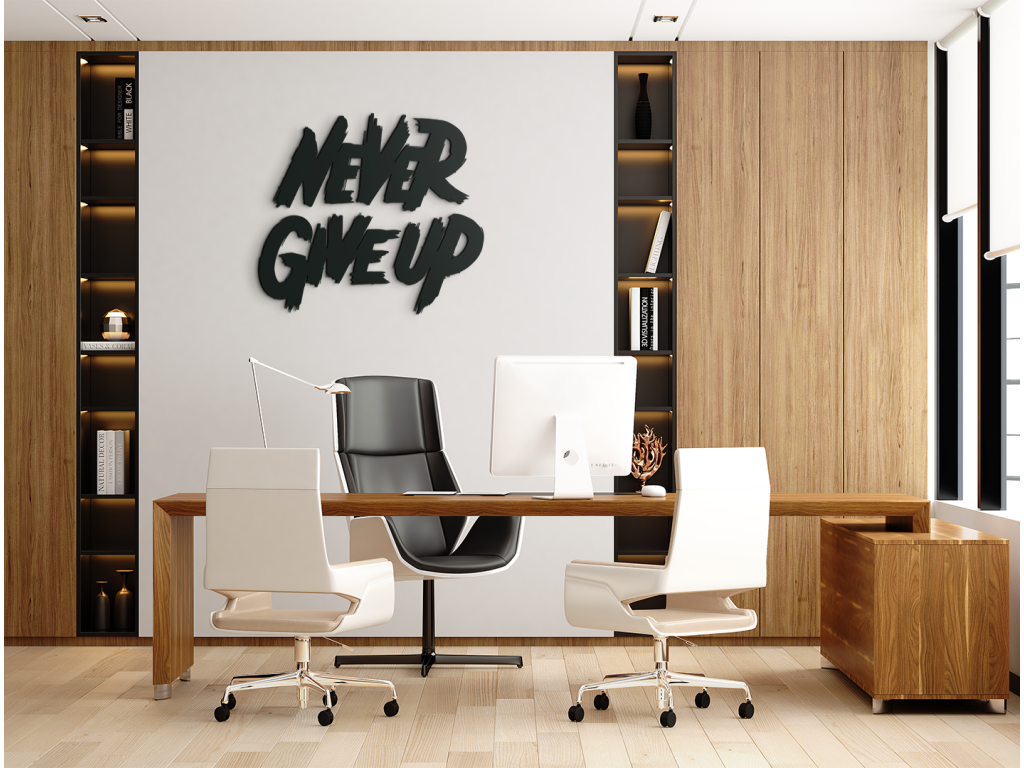 Drevený nápis na stenu Never give up