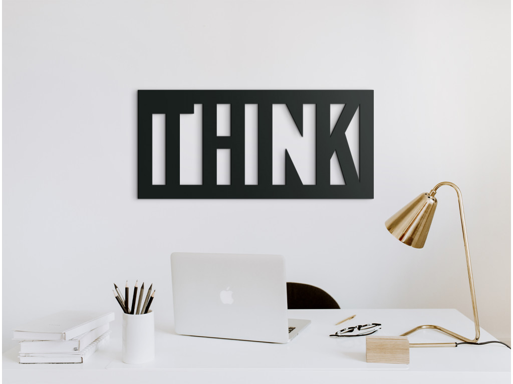Jednoduchý drevený nápis na stenu Think s veľavravným významom je originálnym doplnkom do kancelárie, domácej pracovne, študentskej či internátnej izby. Je ako stvorený do moderného interiéru. Vhodne doplní ostatné zariadenie izby a oživí prázdne steny.