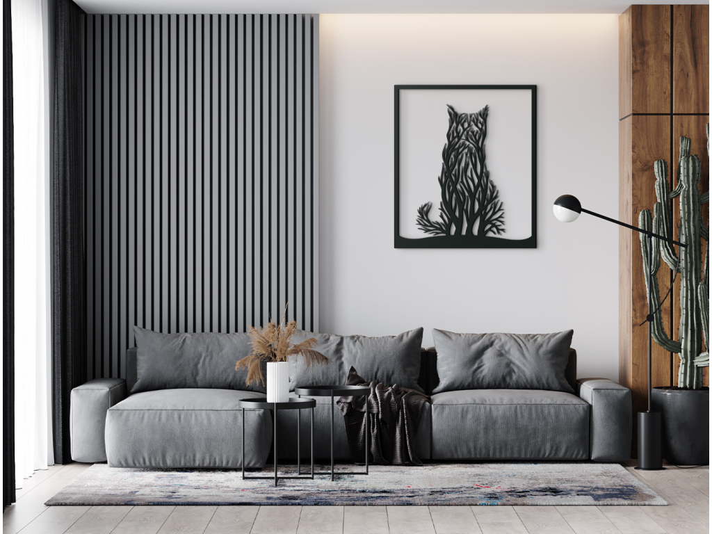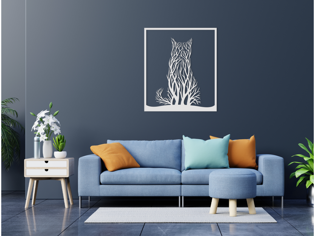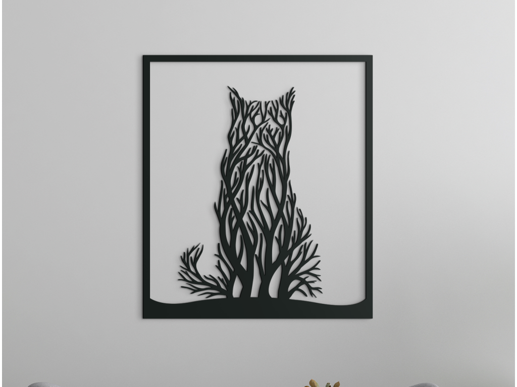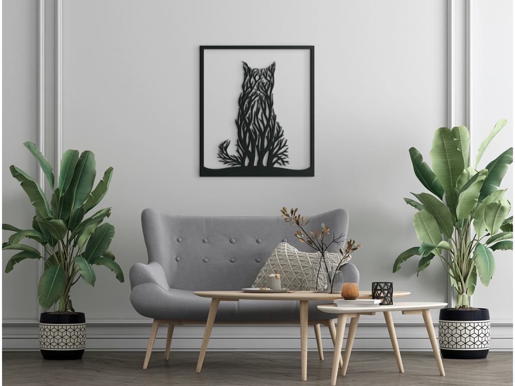 Dodajte svojmu interiéru štipku mačacej elegancie. Je to celkom jednoduché vďaka drevenému obrazu s mačacím motívom - Mačka a stromy. Dekorácia na stenu znázorňuje sediacu mačku, avšak pri podrobnejšom pohľade je vidieť, že silueta mačky je tvorená štvoricou stromov a ich korunami a konármi.