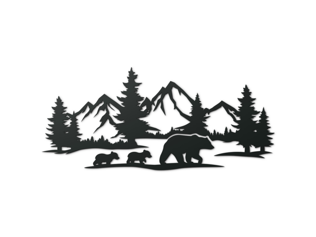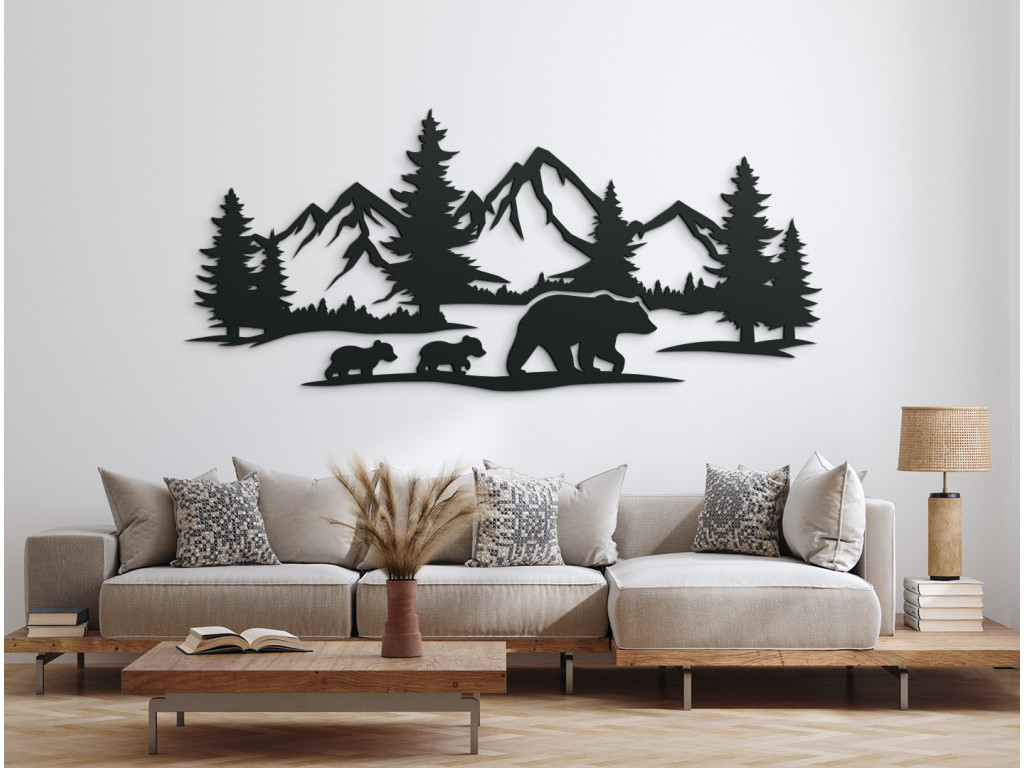 AKCIA Drevený obraz na stenu Medvede v horách, Čierna