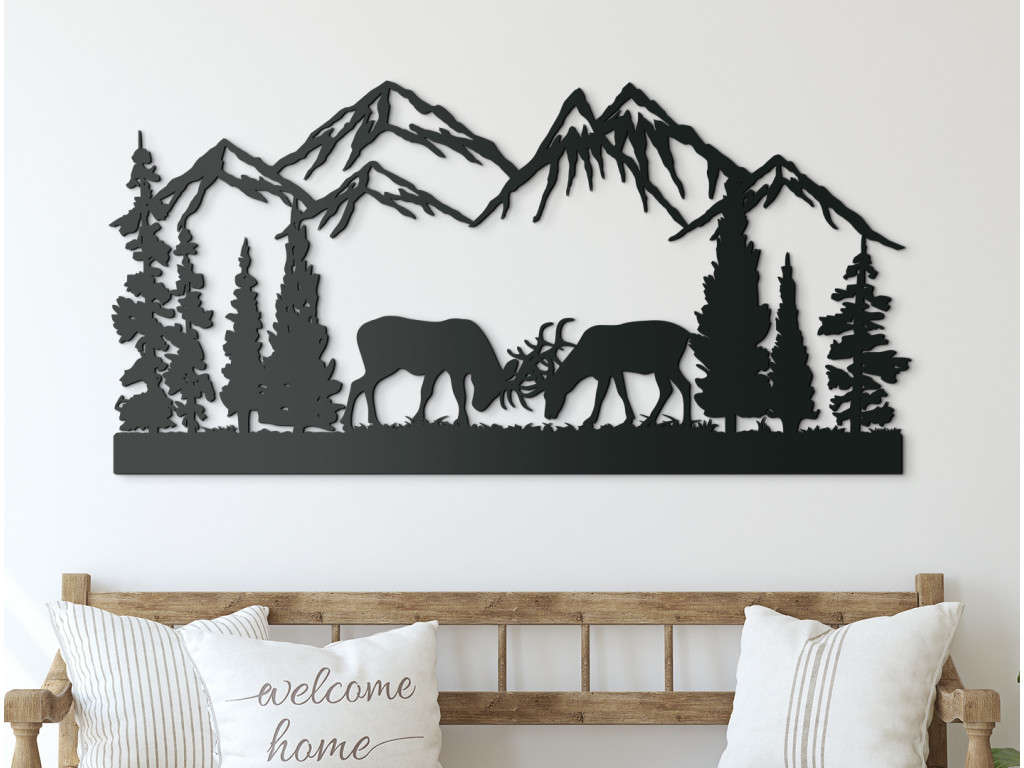 Elegantný obraz vzbudí vo vás pokojnú a ničím nerušenú atmosféru. Sú na ňom vyobrazené jelene súperiace v lese. Nad lesom sa rozjímajú veľkolepé hory. Drevený obraz je ideálny do moderných aj klasických interiérov, chát, kancelárií a iných priestorov. Tiež bude ideálnym darčekom pre poľovníkov, milovníkov hôr či turistov.