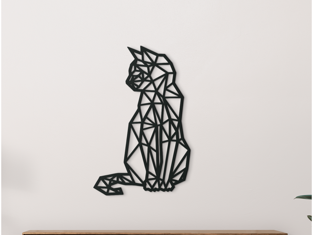Azda neexistuje gracióznejšie zviera ako mačka. Dokonalá ladnosť akýchkoľvek pohybov je pre tieto stvorenia taká prirodzená, že prakticky vždy a všade vyzerajú pôvabne a uhladene. Rovnako je to aj s drevenou dekoráciou na stenu Polygonálna mačka, ktorá dodá osobitné čaro každej miestnosti. Nálepka znázorňuje sediacu mačku, ktorá zamyslene hľadí nabok.