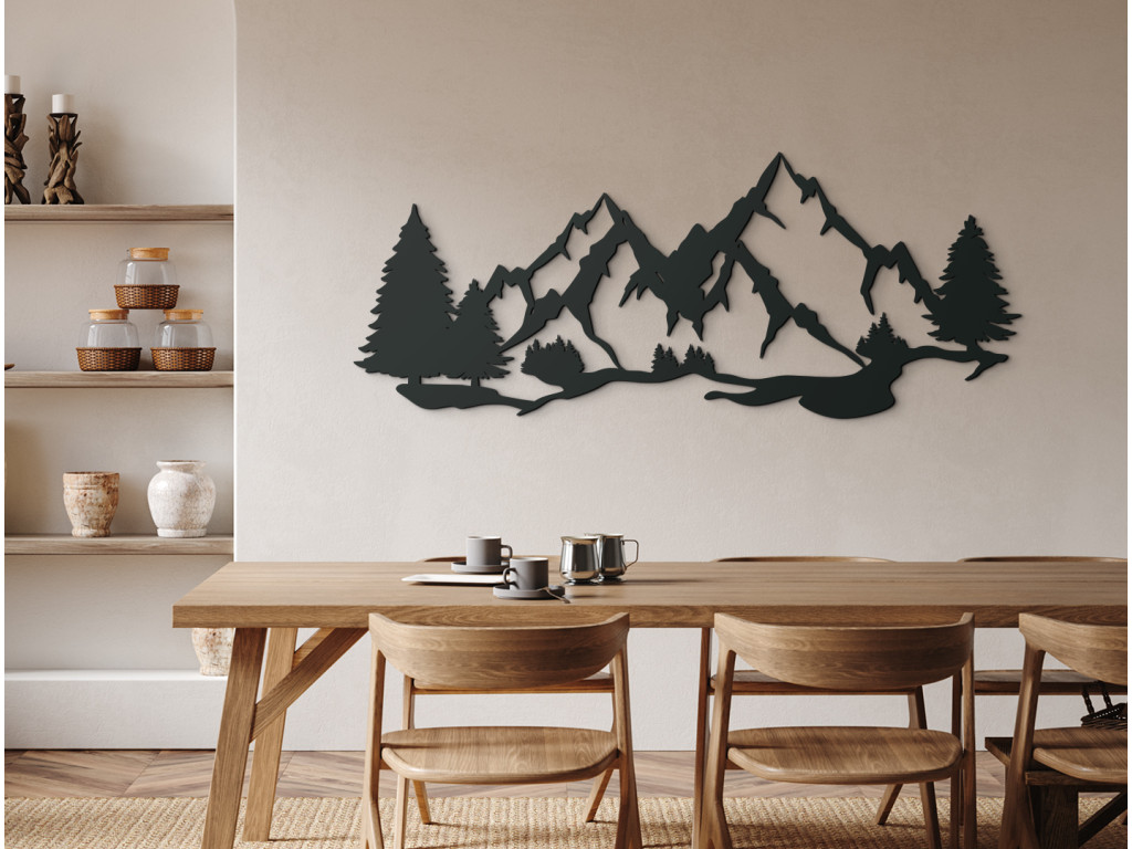 Radi trávite čas v prírode? V tom prípade si zaľúbite tento vyrezávaný obraz Hory a stromy. Znázorňuje kus krásnej prírody a zachytáva aj tie najmenšie detaily hôr, ktoré sa týčia ponad lúky a lesy.