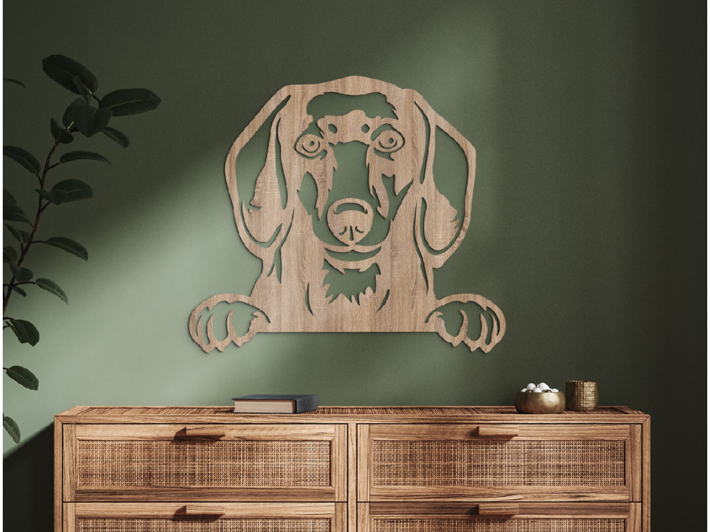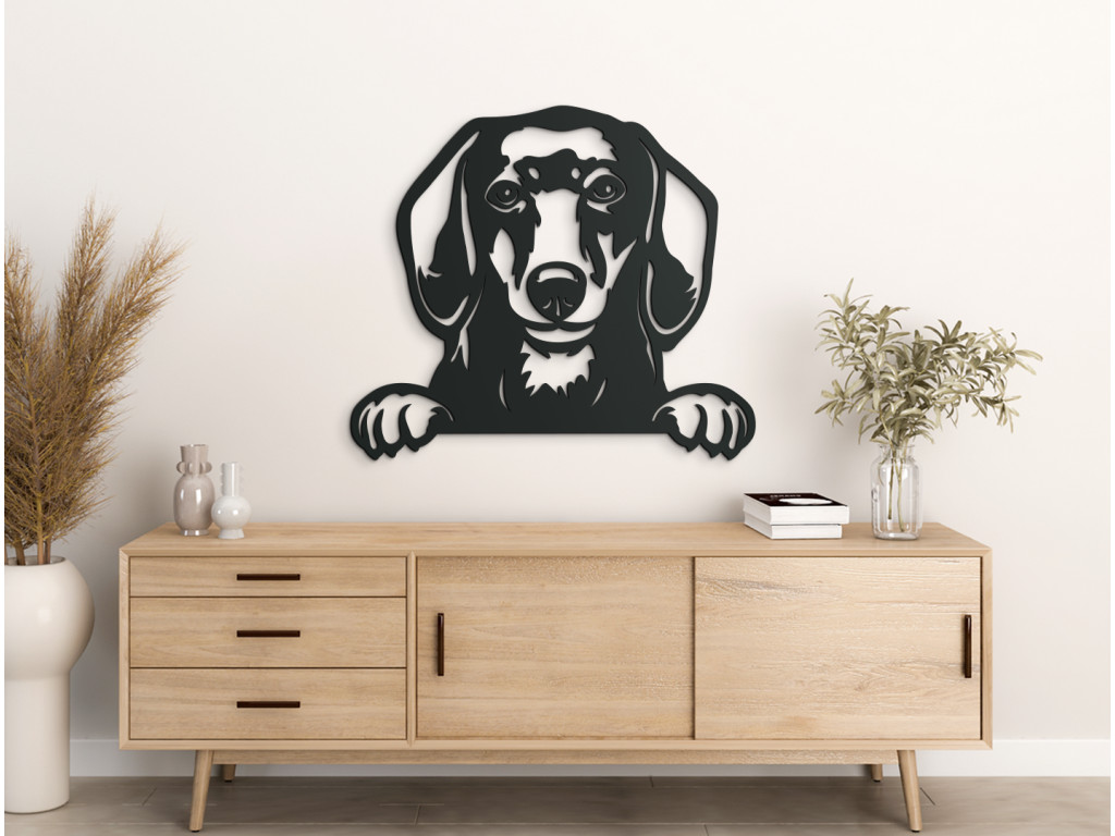Roztomilého jazvečíka si doma môžete zvečniť aj vďaka drevenenej dekorácii. Podobizeň psíka spredu si zamilujú všetci majitelia tohto malého plemena pôvodom z Nemecka, kde ho nazývajú Dachshund. Typické sú preňho nízke nožičky a podlhovastý trup. Práve vďaka nim si vyslúžil úsmevnú prezývku "klobáska". Nenechajte sa však zmiasť, tvar tela mu v obratnosti neprekáža a po výcviku vie byť úspešným poľovným psom a verným spoločníkom celej rodiny. Obraz jazvečíka si môžete vybrať z viacerých farebných variantov podľa vášho vkusu.