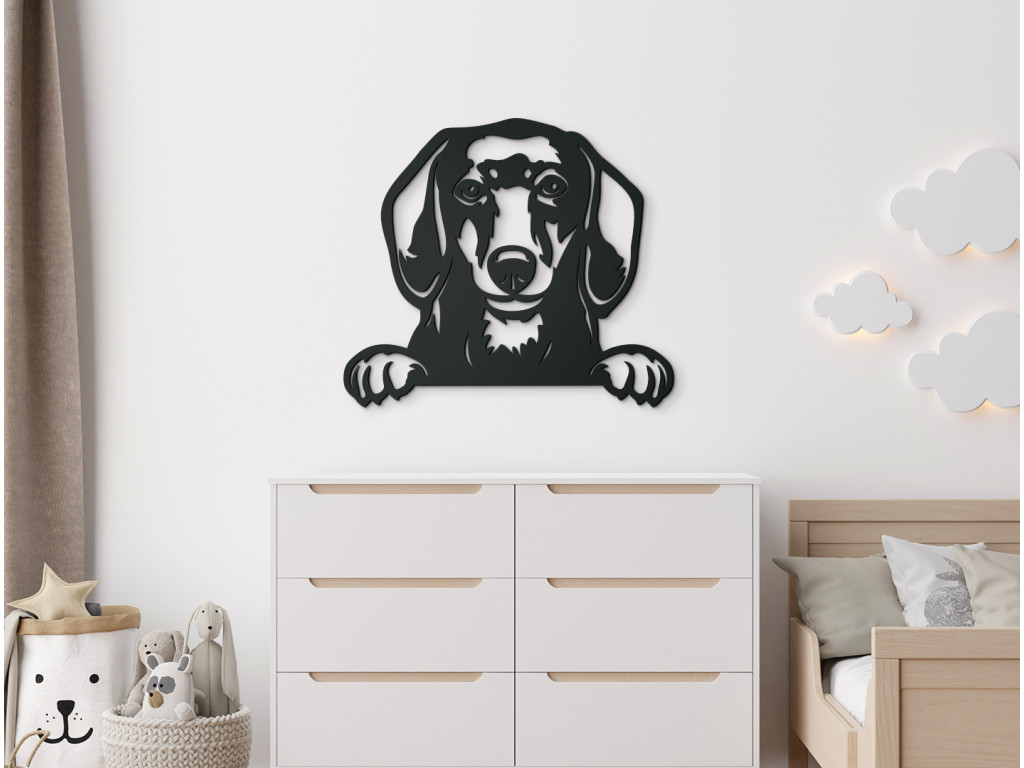 Rozkošný jazvečík môže majiteľov tohto domáceho maznáčika tešiť aj v drevenej podobe. Moderná 3D nálepka psa na stene dokonale vynikne, a to v každom z 8 dostupných dekorov. Verne zachytáva portrét jazvečíka spredu v 3 rôznych rozmeroch, ktorý tak môže v interiéri robiť spoločnosť všetkým členom rodiny.