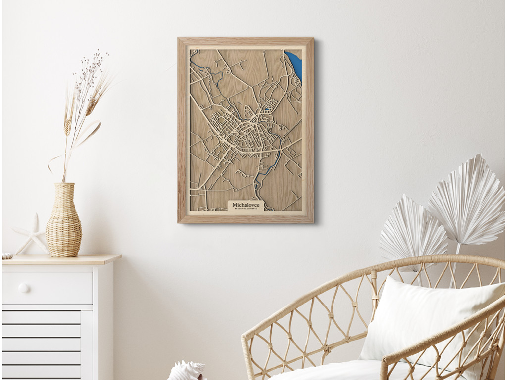 Tak schválne, ako rýchlo sa viete zorientovať v uliciach srdca Zemplína? Drevený obraz Michalovce dopĺňa kolekciu drevko CITY o 15. najväčšie mesto Slovenska. Zachytáva centrálne časti, ale aj Stráňany, Žabany, Topoľany, Milovanú, Močarany, Betlenovce, Meďov a Vrbovec. Modrá plocha v rohu reprezentuje vodnú nádrž Zemplínska Šírava. Medzi cestami sa však kľukatí aj rieka Laborec a Stráňanský rybník. Mapu Michaloviec vám radi vyskladáme na mieru podľa farieb a rozmerov voliteľných nižšie.
