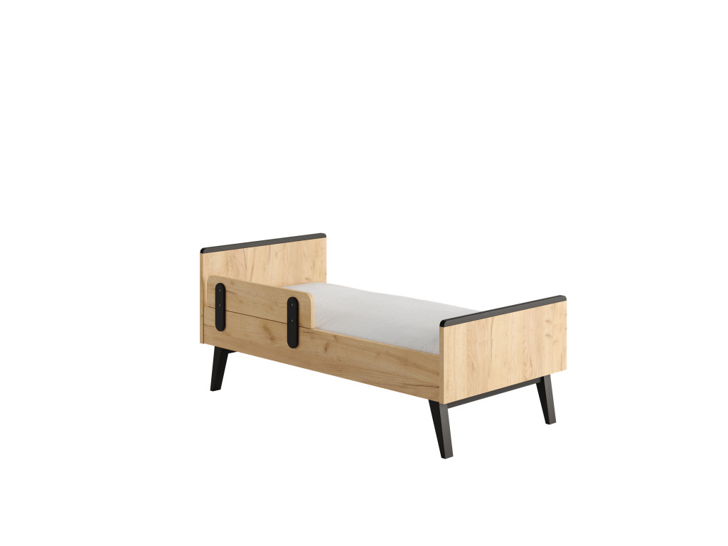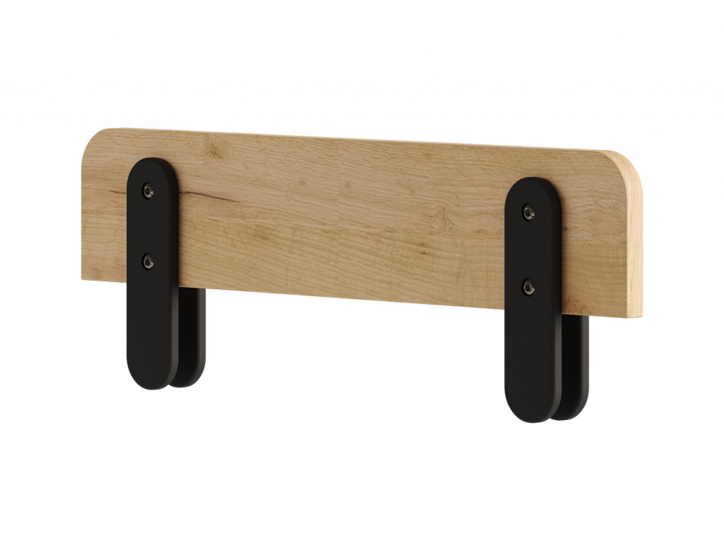 Dodáva sa v dubovej farbe. Zábrana je vyrobená z laminovanej drevotriesky a podpera z borovicového dreva. Jednoducho sa nasúva na rám postele, zvnútra sa dá priskrutkovať skrutkou.