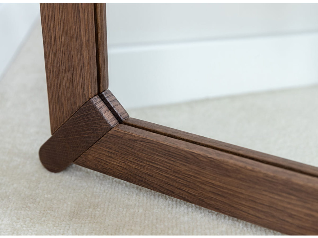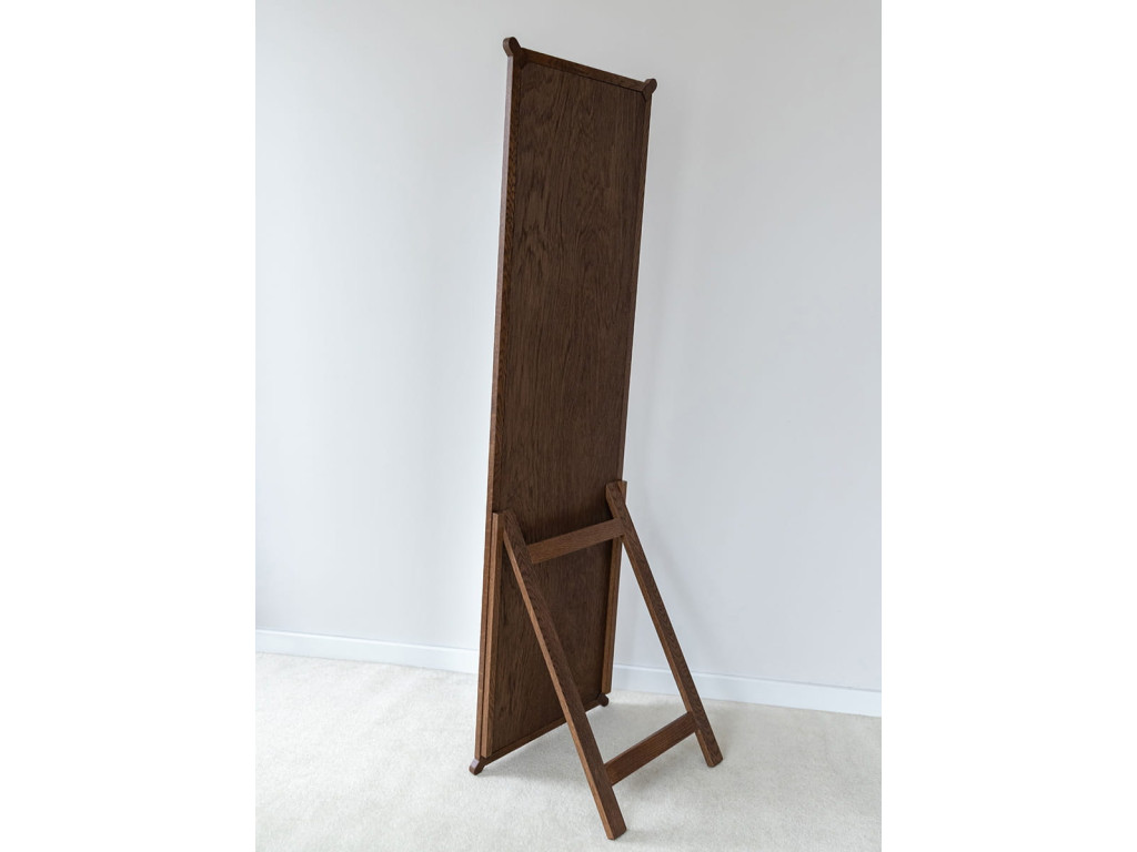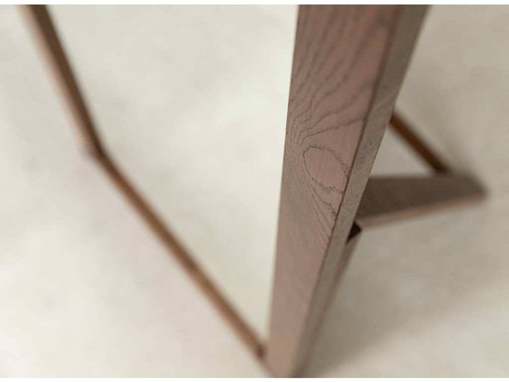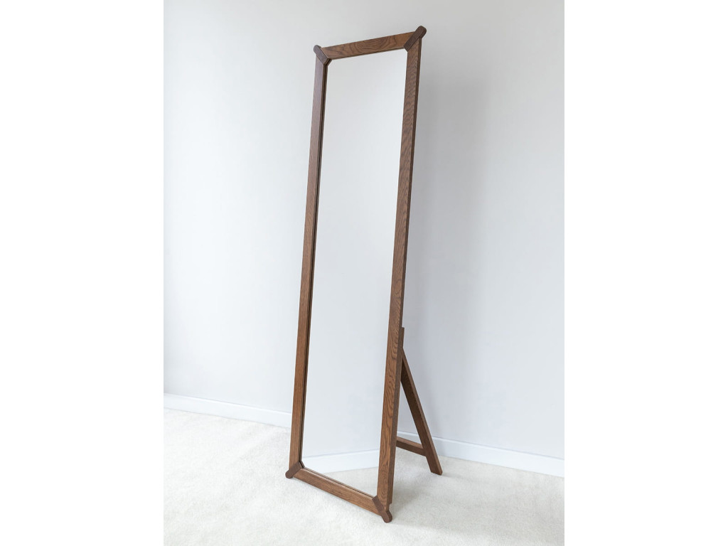 Stojace zrkadlo Campi v prevedení tabakovo hnedá prináša do interiéru hlbší tón dreva a výraznejší vizuálny akcent. Rám z masívneho dubu v kombinácii s olejovanou povrchovou úpravou vytvára odolný a esteticky hodnotný prvok. Vďaka samostatne stojacej konštrukcii je zrkadlo flexibilné a ľahko sa prispôsobí priestoru bez nutnosti vŕtania. Okrem praktického využitia dodáva miestnosti svetlo a optickú hĺbku.